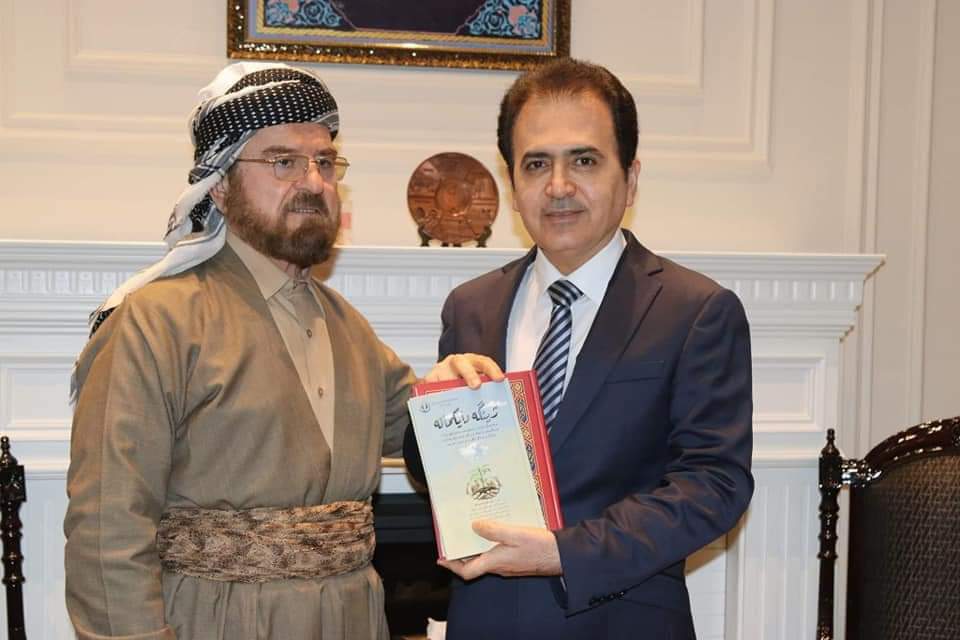 مامۆستا سەلاحەدین موحەممەد بەهائەدین پیرۆزبایی پۆستی نوێ لە پ.د. عەلی قەرداغی دەكات