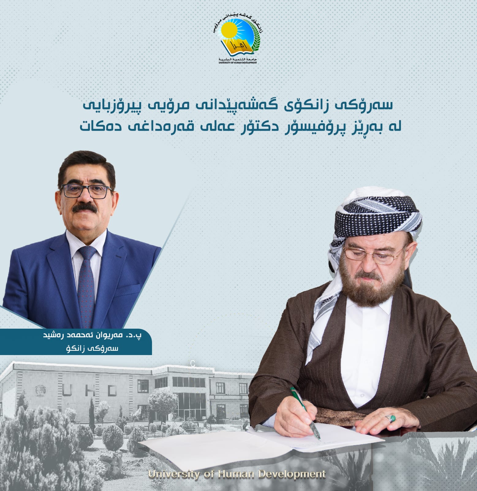 سەرۆكی زانكۆی گەشەپێدانی مرۆیی پیرۆزبایی ئاڕاستەی د. عەلی قەرەداغی دەكات