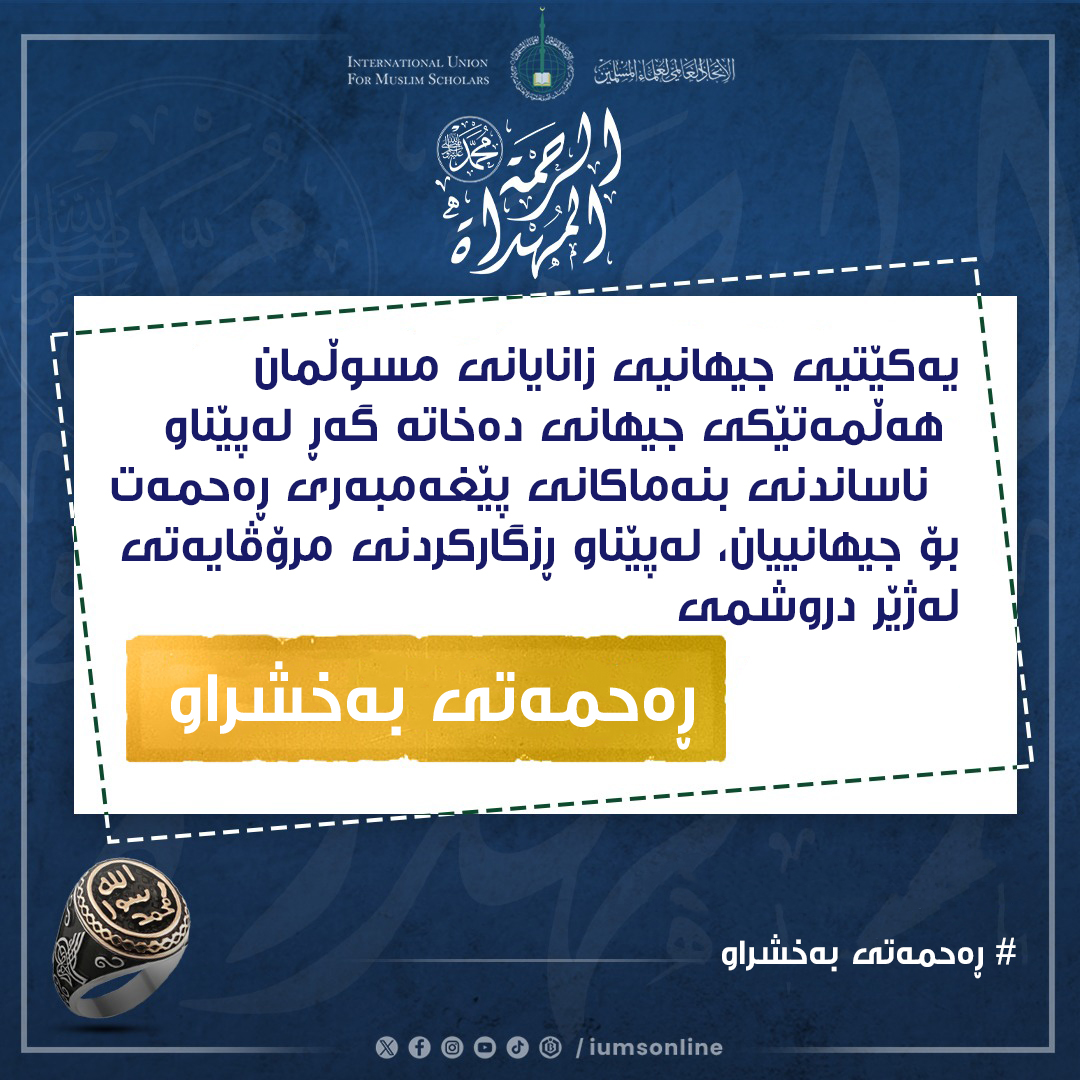 "ڕەحمەتی بەخشراو".. یەكێتیی جیهانیی زانایانی مسوڵمان، هەڵمەتێكی جیهانی دەستپێدەكات لەپێناو ناساندنی بنەماكانی پێغەمبەری ڕەحمەت ﷺ و بەزەییی و ڕزگاردكردنی مرۆڤایەتی